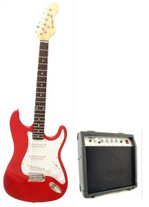 The Dean Vendetta Guitar & Amp Pack includes the Dean Vendetta XMT Electric Guitar, Dean M-10 Guitar Amp, electronic tuner, strap, cord, picks, and gig bag. The Dean Guitars Packs are the Perfect Guitar Starter Kits for the beginning guitar player. Get everything you need to get going on your path to being a true guitar great (practice required!). Vendetta XMT Electric Guitar The Dean Vendetta XMT is a solid choice for beginners and veterans alike. The Vendetta XMT is fitted with a vintage tremolo bridge so you can make this axe howl while you note bend notes like a maniac. Also features dual humbucker pickups, 25.5" scale, solid mahogany body with a bolt-on maple neck and rosewood fingerboard, and black hardware. M-10 Guitar Amp The Dean M-10 guitar amp features 10 watts of power, a 6-1/2" speaker, and has controls that are designed to give the widest variety of tones to practice with. A stereo headphone jack lets you rock anytime without disturbing your roommates or family. Check the drop-down menu to the right to select colors and/or other options.